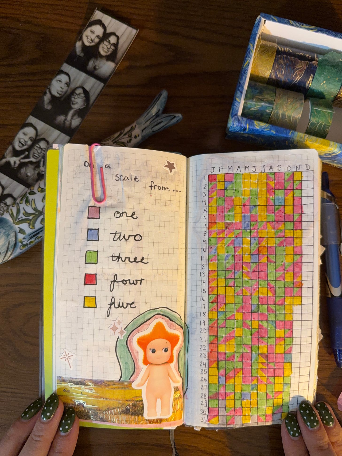 “I’m also really enjoying rating my day on a scale from one to five and writing a single summative sentence to accompany the rating. The rating has been a part of my journaling practice for over three years, but the sentence is new. “